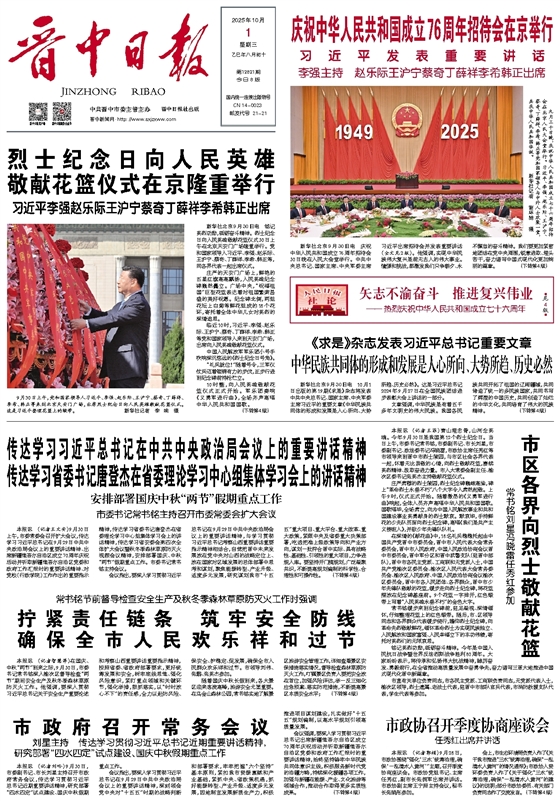 “晉港共建·晉品出?!睍x港通山西·晉中產品展示交流會在我市舉辦 丨 全市學習運用“千萬工程”經驗推進鄉村全面振興暨全域土地綜合整治現場會在壽陽縣召開 丨 省安委會第四次全體擴大會議暨秋冬季森林草原防滅火視頻會議召開